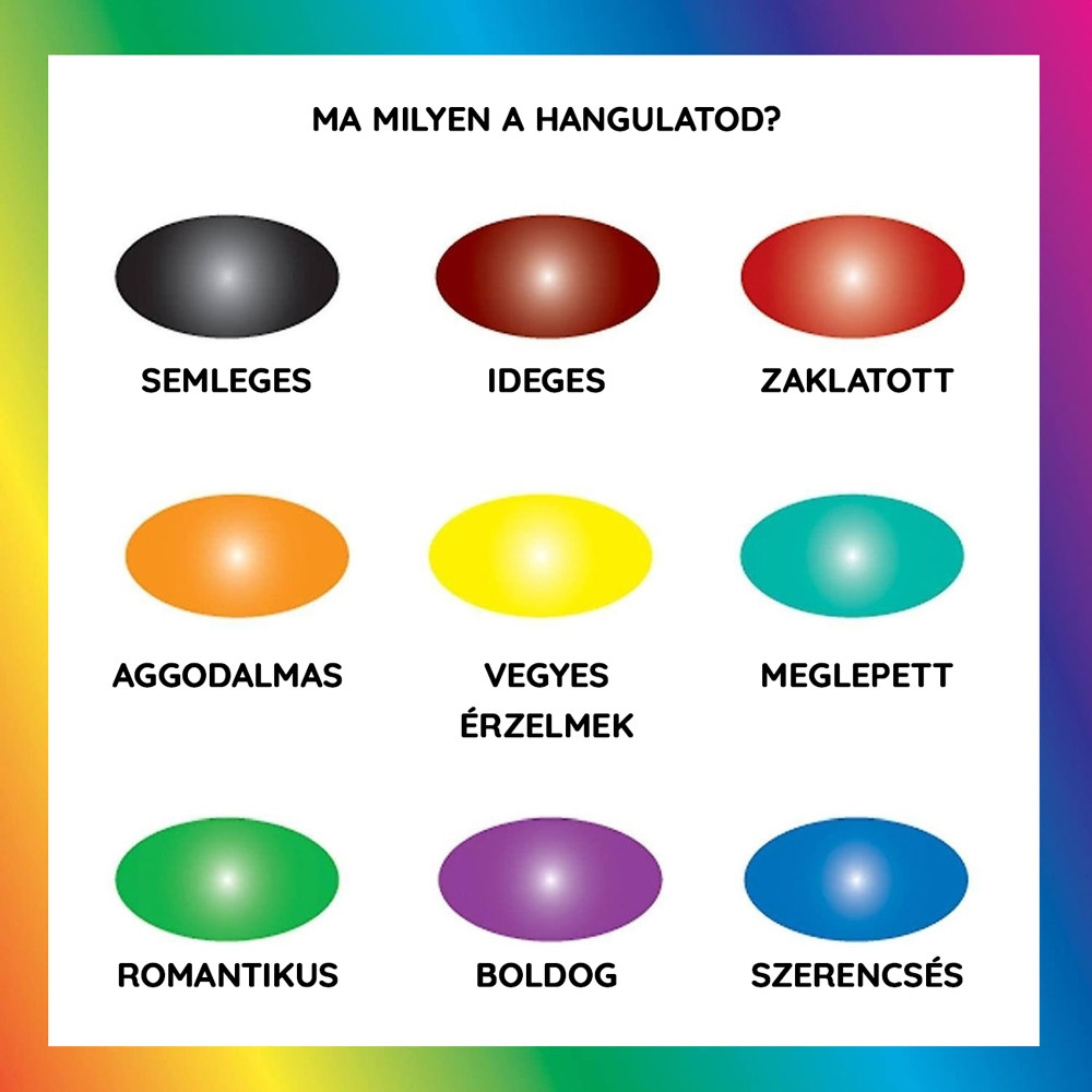 A gyűrű, ami bárhol, bármikor megmutatja, éppen milyen hangulatod van. A hangulatgyűrű különböző színekben pompázik attól függően, hogy éppen milyen kedved van. Egy méretben kapható.