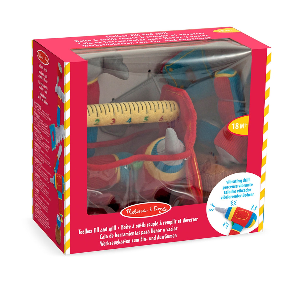A puha szerszámos doboz, egy mókás babajáték a legkisebbeknek a Melissa&Doug-tól. A játék fejleszti a motoros készségeket, a kézügyességet, a szem-kéz koordinációt. A különböző textúrák, minták és színek érdekelni fogják a picit, ráadásul a szett igazi csemege a barkácsolás kis szerelmeseinek. Természetesen a jól felszerelt szerszámosláda mindent tartalmaz, amire csak szükség lehet, így vannak benne csavarok, anyák, szögek, kalapács. Miután a gyerkőc végzett a játékkal, az összes elemet elteheti és tárolhatja a plüss tartóban.