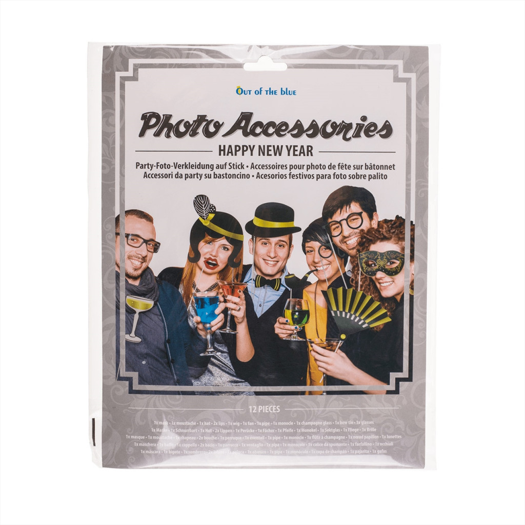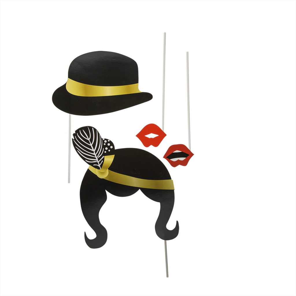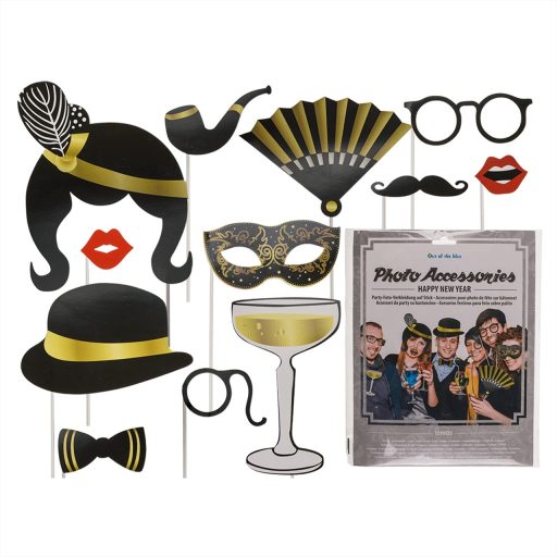 Ez a szett 12 darab pálcára erősített partifotó kiegészítőt tartalmaz.