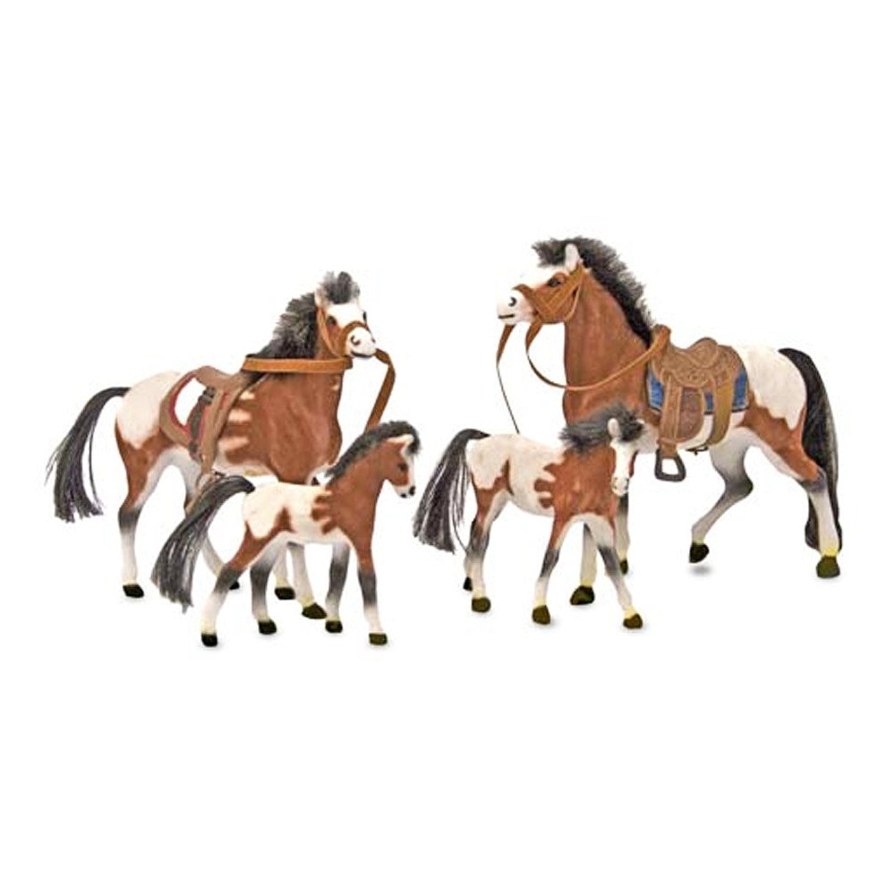Engedd szabadjára fantáziádat ezzel a négytagú Appaloosa pacicsaláddal. Bársonyos tapintással, meglepően élethű mintázattal, sörénnyel és farokkal. A két nagyobbik ló már fel van nyergelve egy igazi kalandos utazásra, a csikók pedig készen állnak a nagy felfedezésekre.