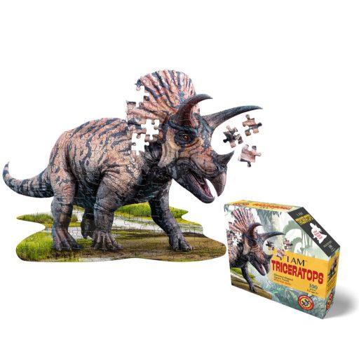 Nem csak a kép élethű, de a kirakott puzzle formája is egyedi, hiszen a Triceratops körvonalát követi, amivel még lenyűgözőbb hatást kelt.