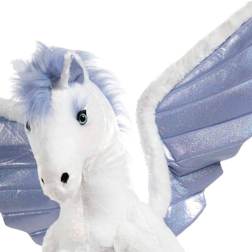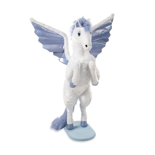 Hadd szárnyaljanak a csodás álmok! Ez a fenséges szárnyú, a hátsó lábai ágaskodó pegazus több mint egy méter magas, és készen áll arra, hogy az égbe és vele együtt a gyerekek szívébe és képzeletébe ugorjon! A pegazus puha testét selymes fehér szőr borítja, hogy még nagyobb szeretettel ölelhesse a gyermek magához, valamint csillogóan lila ékes szárnyai és patája, továbbá lila sörénye van. A kiváló minőségű kivitelezése és az erős belső szerkezete miatt büszkén állhat ez a pegazus a szobádban az elkövetkező években. A pegazus hátsó lábai egy ovális, több mint fél méter hosszú alapon állnak az extra stabilitás érdekében. Tökéletes díszítő eleme minden szobának, valamint ösztönzője a képzeletbeli kalandoknak!
