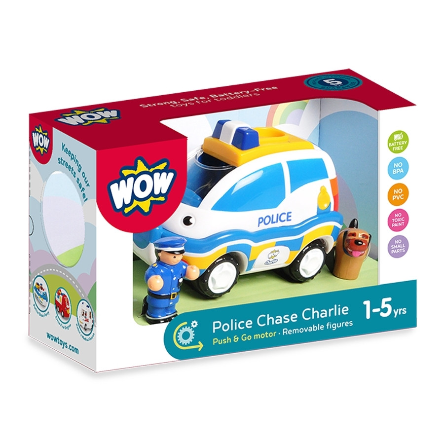 Állítsátok meg, tolvaj! Ez elől a szupergyors rendőr járőrautó elől nem lehet megszökni. A rendőrautó lendkerékkel működik, és valóságos motorhangja van, gombnyomásra pedig kinyílik a teteje. A készlet tartalmaz egy rendőrt, és egy rendőrkutyát. Órákig tartó szerepjáték!