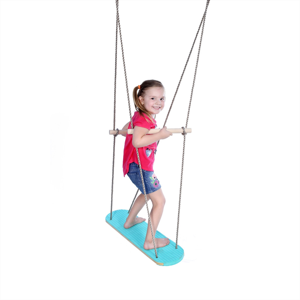 Kapd el a jóidő hullámait a Wonderland deszkahintával! A deszka 80 cm hosszú, 20 cm széles és 1.8 cm vastag. A függők magassága 160 cm, állíthaó. A deszkát 10 mm átmérőjű masszív PE kötelek tartják, amíg úgy hintázol és egyensúlozol a légáramlatokban, mintha csak hódeszkáznál vagy szörföznél. Az akasztógyűrű mérete 6.5 x 50 mm.