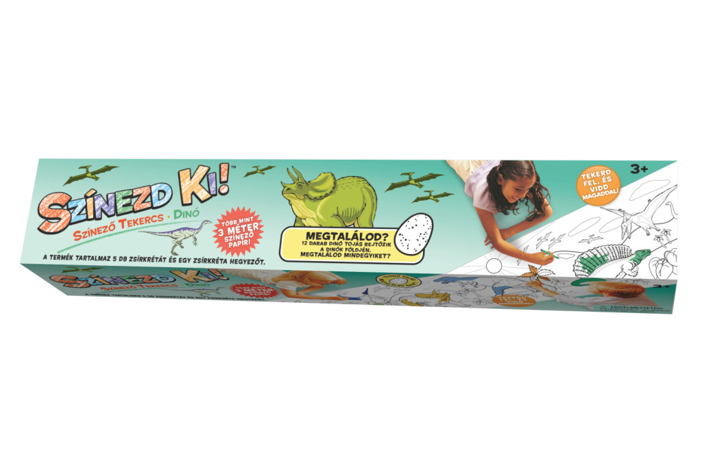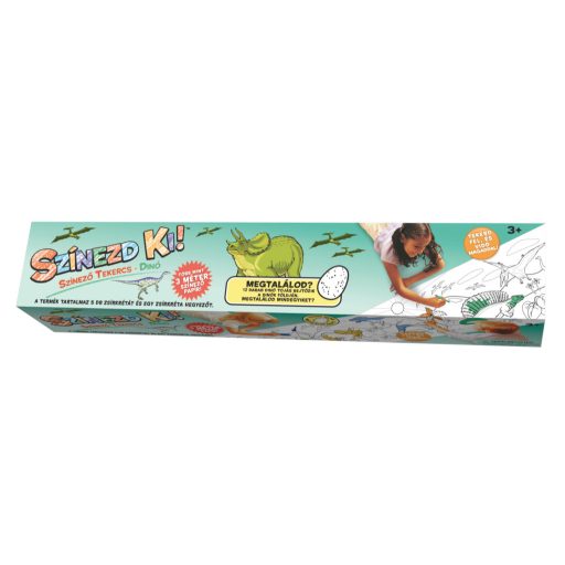 Színező tekercs! 300 x 42 cm-es kihúzható színező, mellyel egyszerre akár több gyereket is foglalkoztathatunk, színezés közben a fiúk megismerhetik a dínók ősi világát!