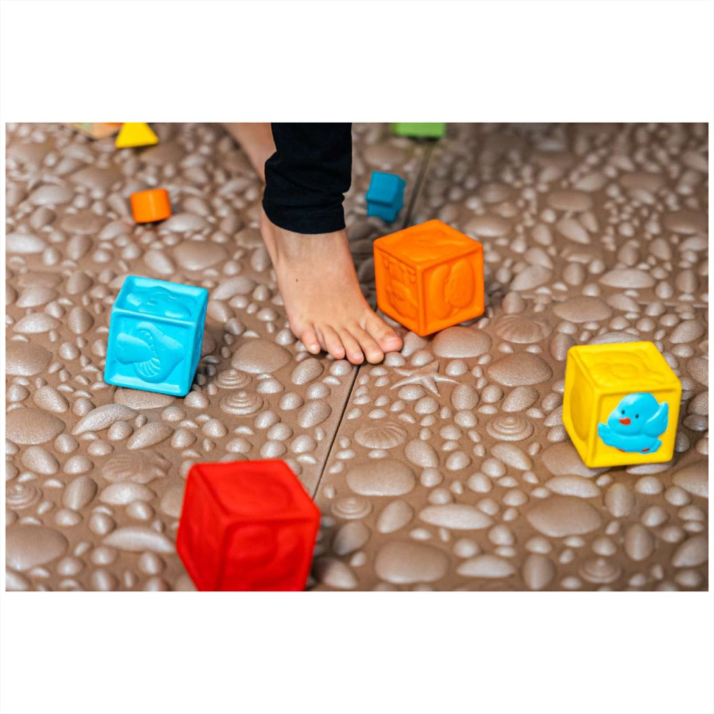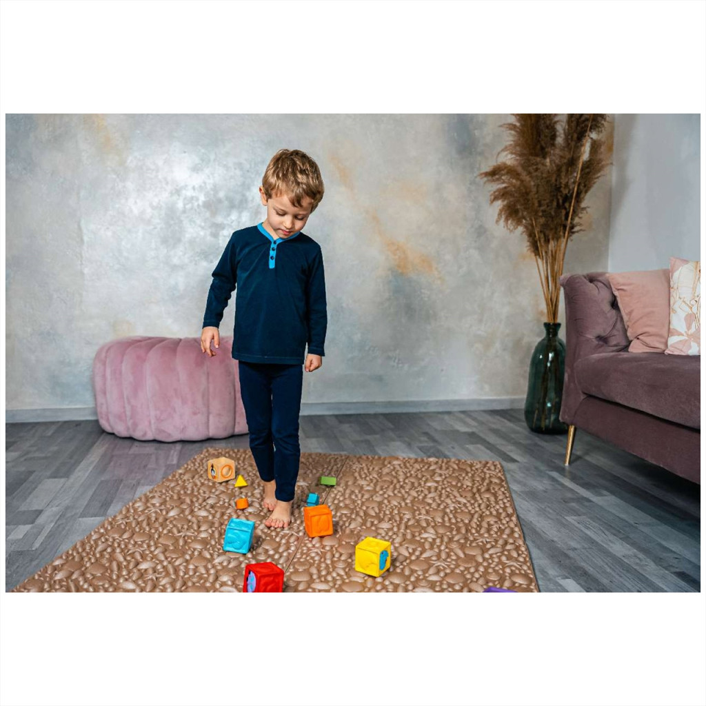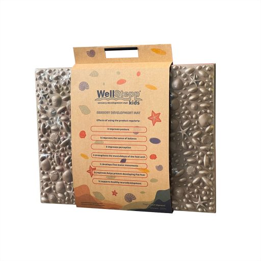 A WellStepp® Kids fejlesztő szőnyeg tengerpartot idéző alakzatainak és kellemes felületének köszönhetően vidám játékká teszi a gyerekek talpboltozat izomzatának erősítését. Különleges kialakítása kényelmes és hatékony megoldást jelent a gyermekkorban kialakuló, élethosszig tartó ortopédiai rendellenességek megelőzésére. Rendszeres használatával elkerülhető a lúdtalp és az egyéb lábízületi panaszok kialakulásra, elősegíthető továbbá az egészséges testtartás megőrzése és az idegrendszer megfelelő fejlődése.