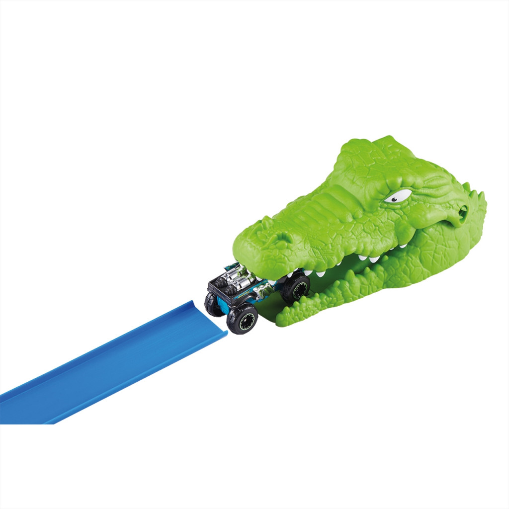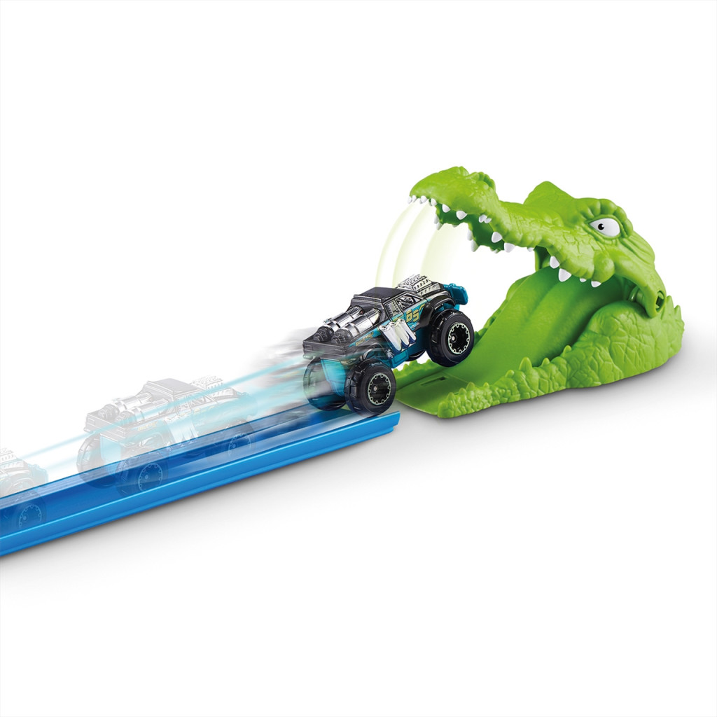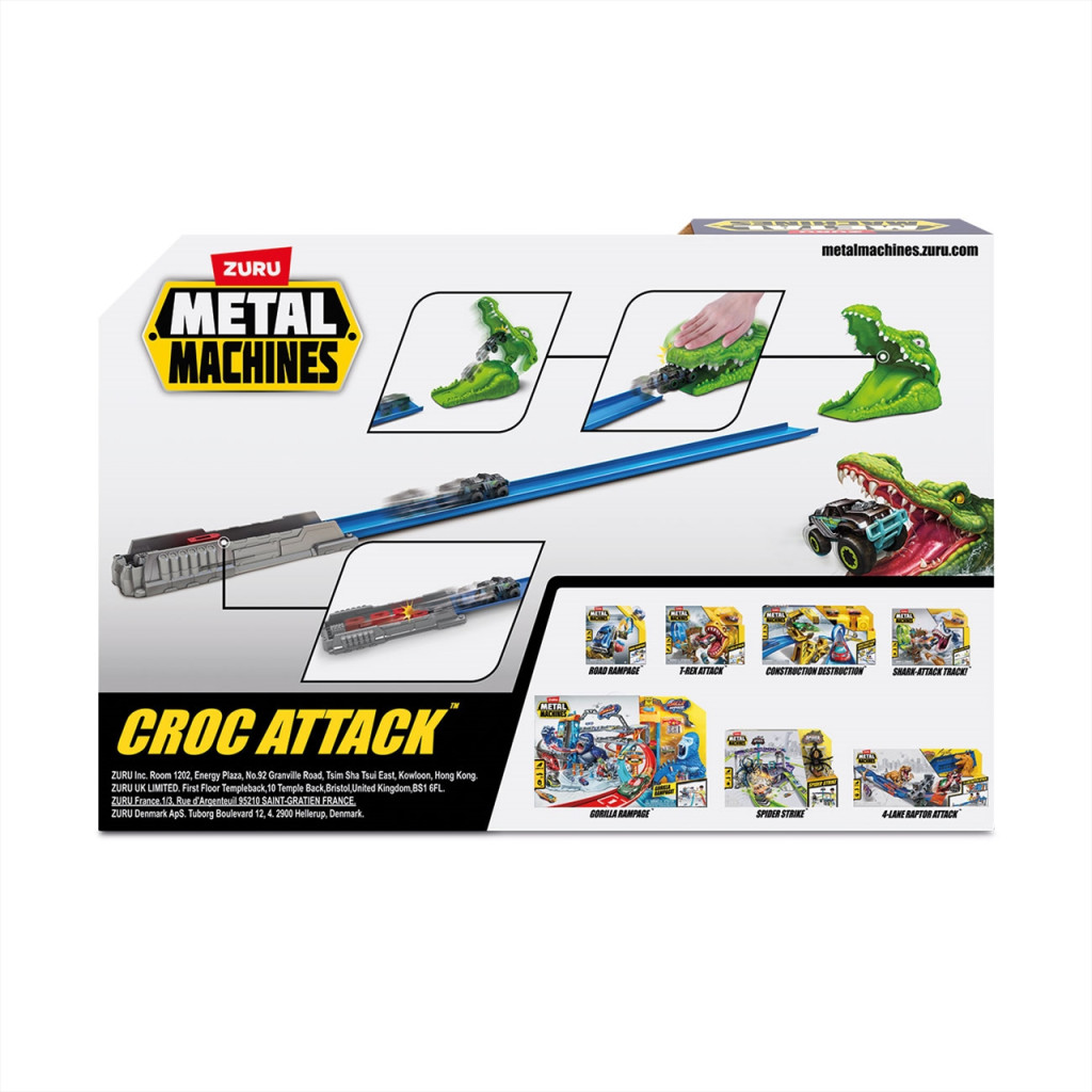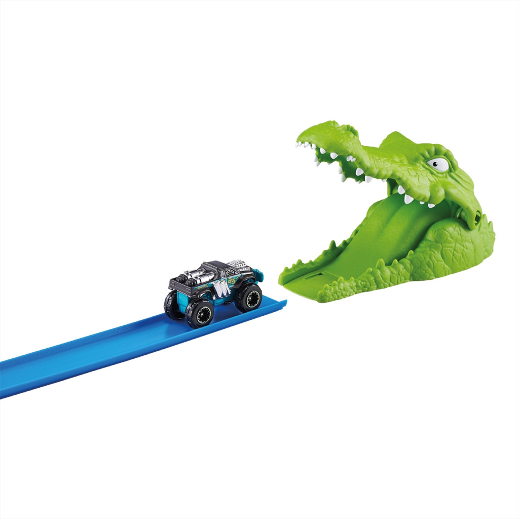 Lépj a gázra, mert egy flottányi Metal Machines kisautó várja, hogy begyűjtsd őket, és teszteld őket a legőrültebb pályákon! A Metal Machines korokodil támadás játékszett 1:64-es méretarányú monster járgányokkal kompatibilis. Vajon elég gyorsak, hogy szembenézzenek a krokodil harapásával? A szettben egy vagány kisautót találsz, de más kedvencedet is a kilövőbe helyezheted. Indítsd a katapultot, hogy végrehajtsd a mutatványt! A pályát 4 éves kortól ajánljuk.