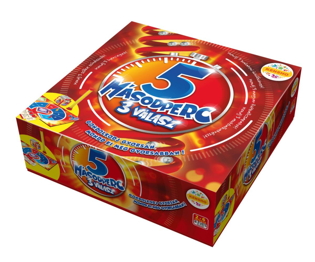Az izgalmas társasjáték lényege, hogy 5 másodperc alatt kell felsorolni olyan szavakat, amik a kihúzott kártyán lévő témakörhöz kapcsolódnak. Mondj 3 filmhőst…., piros színű dolgot…., kutyafajtát… Ugye nem is olyan könnyű, ha csak 5 másodperced van rá? A játékot kétféle nehézségi szinten játszhatják kisebbek és a nagyok. 2-6 játékos számára, 8 éves kortól ajánlott.