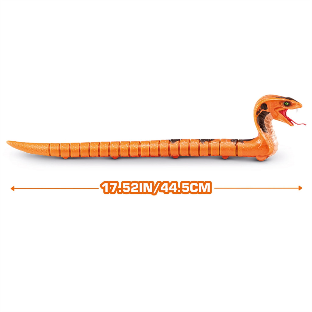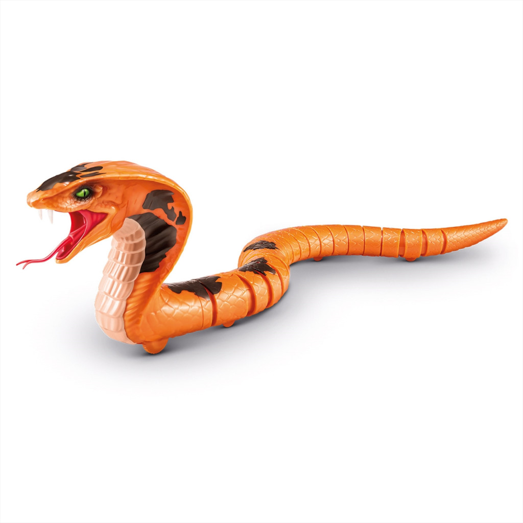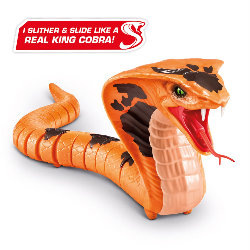 Óvakodj a nyílt erdők és mangrove gyökerek legádázabb ragadozójától! Hogy ki tud elrejtőzni ilyen tájakon? Jobb, ha fülelsz, hogy felismerd a rettegett király kobra  baljós sziszegését! A Zuru Robo Alive robot kobra pedig épp úgy kúszik, akár az igazi kígyók, még a nyelvét is nyújtogatja, amikor felméri a terepet haladás közben. Rejtsd el a meglepetés erejéhez, és aktiváld a legnyugodtabb pillanatokban. A kígyó hossza 44.5 cm. A játék 2 darab 1.5V AAA/LR03 elemmel működik, melyet külön szükséges beszerezni.