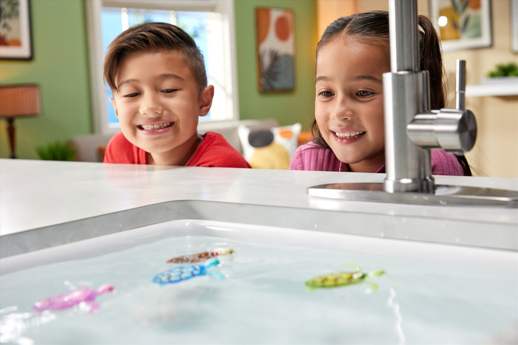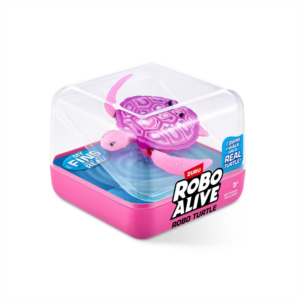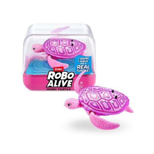 Interaktív ismerkedés az állatvilággal egy rózsaszín Robo Alive Robo Turtle teknőssel már 3 éves kortól. A játék 2db LR4/AAA elemmel működik, melyeket a csomag tartalmaz, így felbontás után azonnal indulhat a vízi kaland.