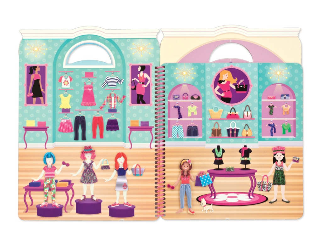 10 oldalas, spirál kötésű foglalkoztató füzet, melynek minden lapja más és más divattal kapcsolatos jelenetet tartalmaz. Mindegyik kiváló háttértörténetet biztosít a karakterek számára. Többek között vásárolással, relaxálással, kényeztetéssel kapcsolatos témák közül választhatsz. Az egyes karakterekre divatos ruhákat, ékszereket ábrázoló matricákat is ragaszthatsz, sőt karaktered frizuráját és hajszínét is megváltoztathatod. Ha meguntad a történetet, akkor lapozz egyet, és vágj bele egy új kalandba. Szedd le a matricákat és használd fel a következő történetedben, egy új oldalon. A 196 újra ragaszható pufi matricákat többek között divatszalonban, cipőboltban, SPA-ban, kozmetikusnál használhatod fel. 4 éves kortól ajánlott.
