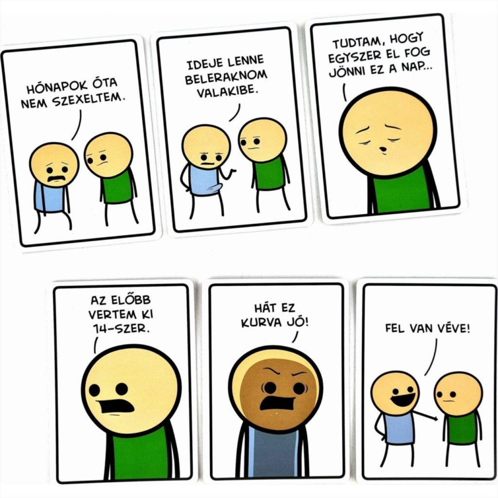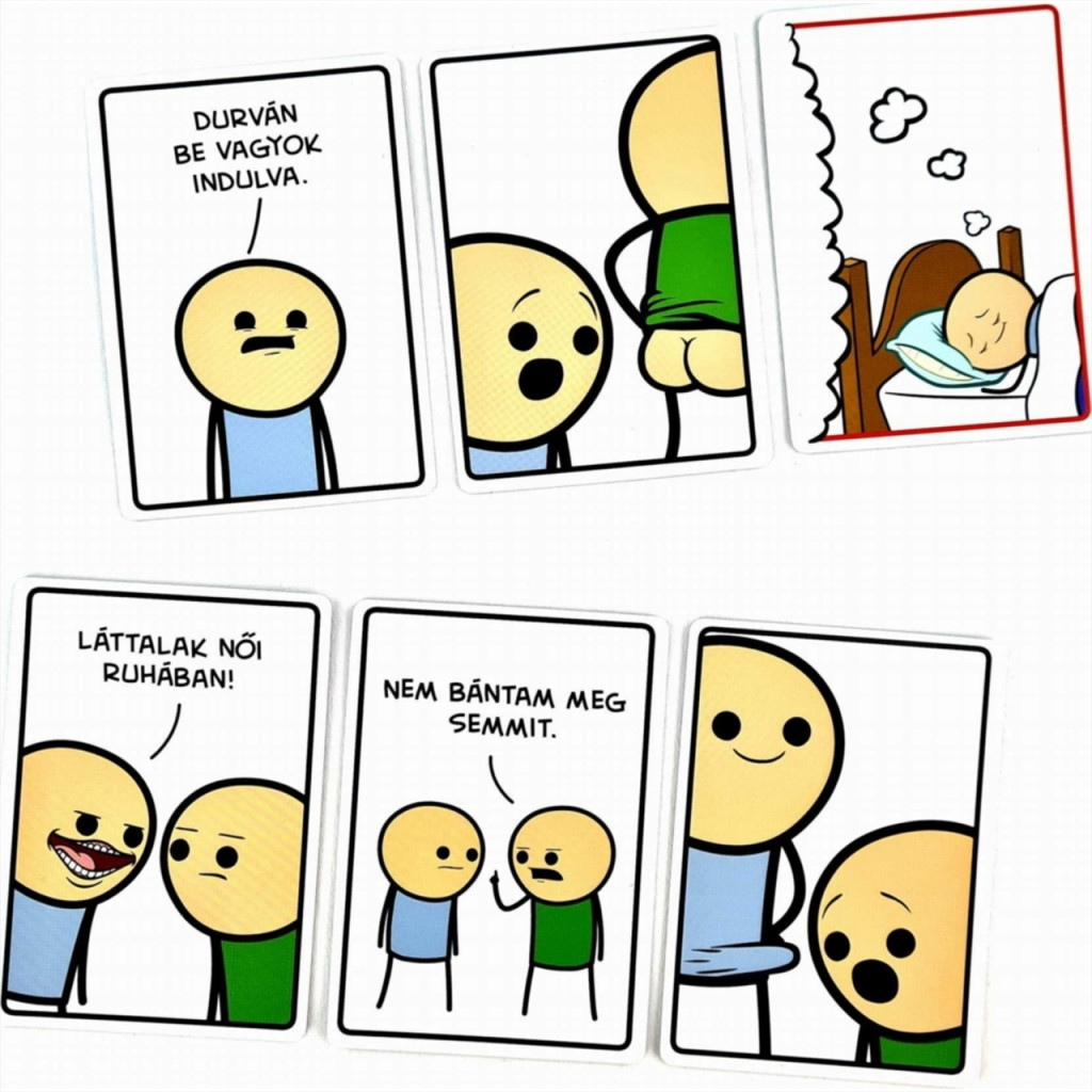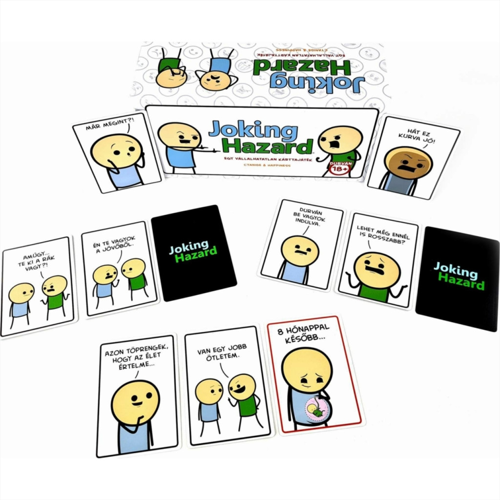 A Joking Hazard – Egy vállalhatatlan kártyajáték kizárólag felnőtteknek szóló, morbid humorral átszőtt partijáték, amelyben a játékosok a megkezdett képsor legütősebb – és gyakran legmeghökkentőbb – csattanóját keresik. A cél nem a finomkodás, hanem a lehető legdurvább, legváratlanabb és legviccesebb befejezés megtalálása.