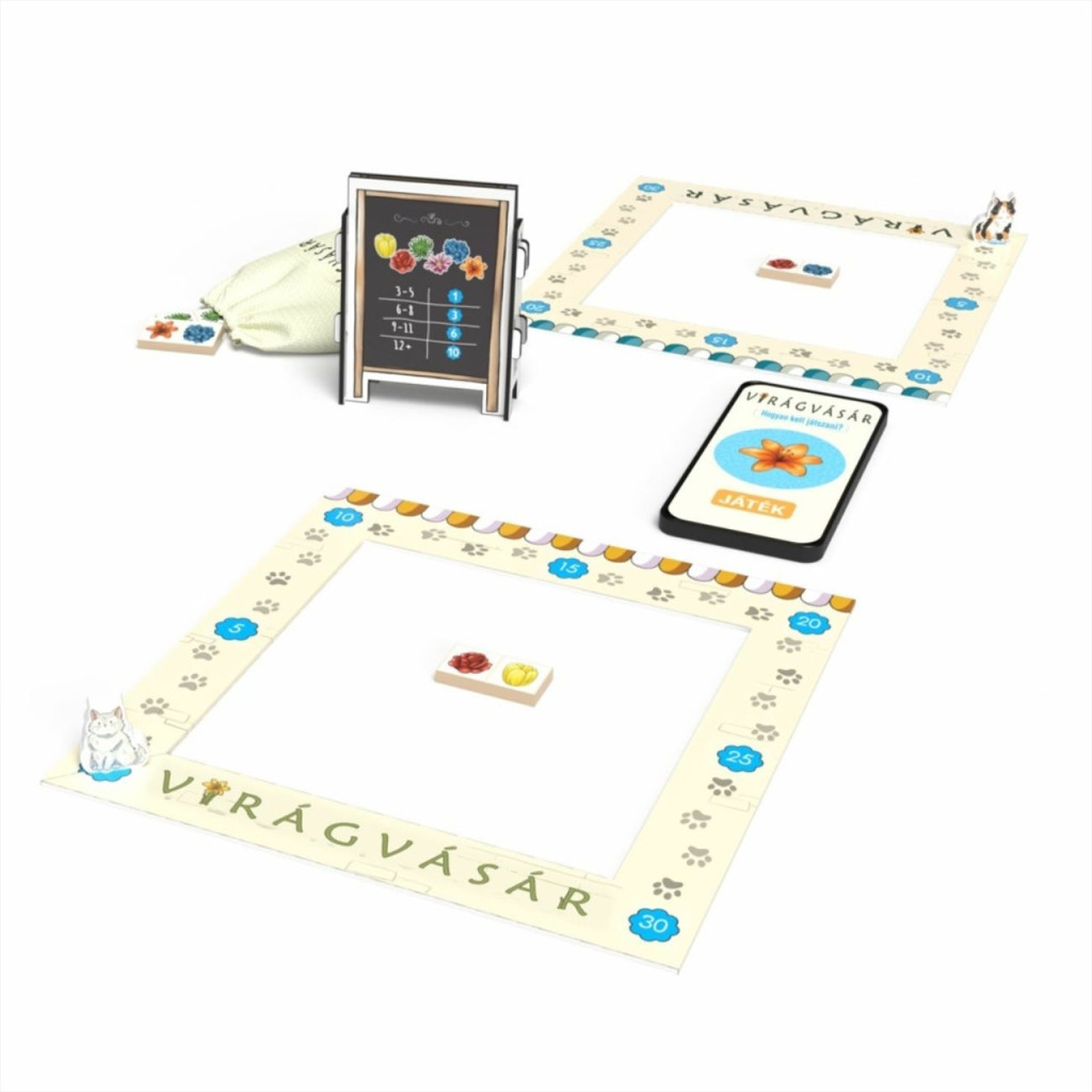 A holland virágvásárban minden pillanat számít: vársz, hogy olcsóbb legyen a hortenzia és a tulipán, vagy azonnal lecsapsz rájuk, nehogy a rivális vigye el előled? A Virágvásár egy különleges, holland aukciós társasjáték két fő részére, ahol az ingyenes applikáció vezeti a licitet és számolja a maradék pénzt.