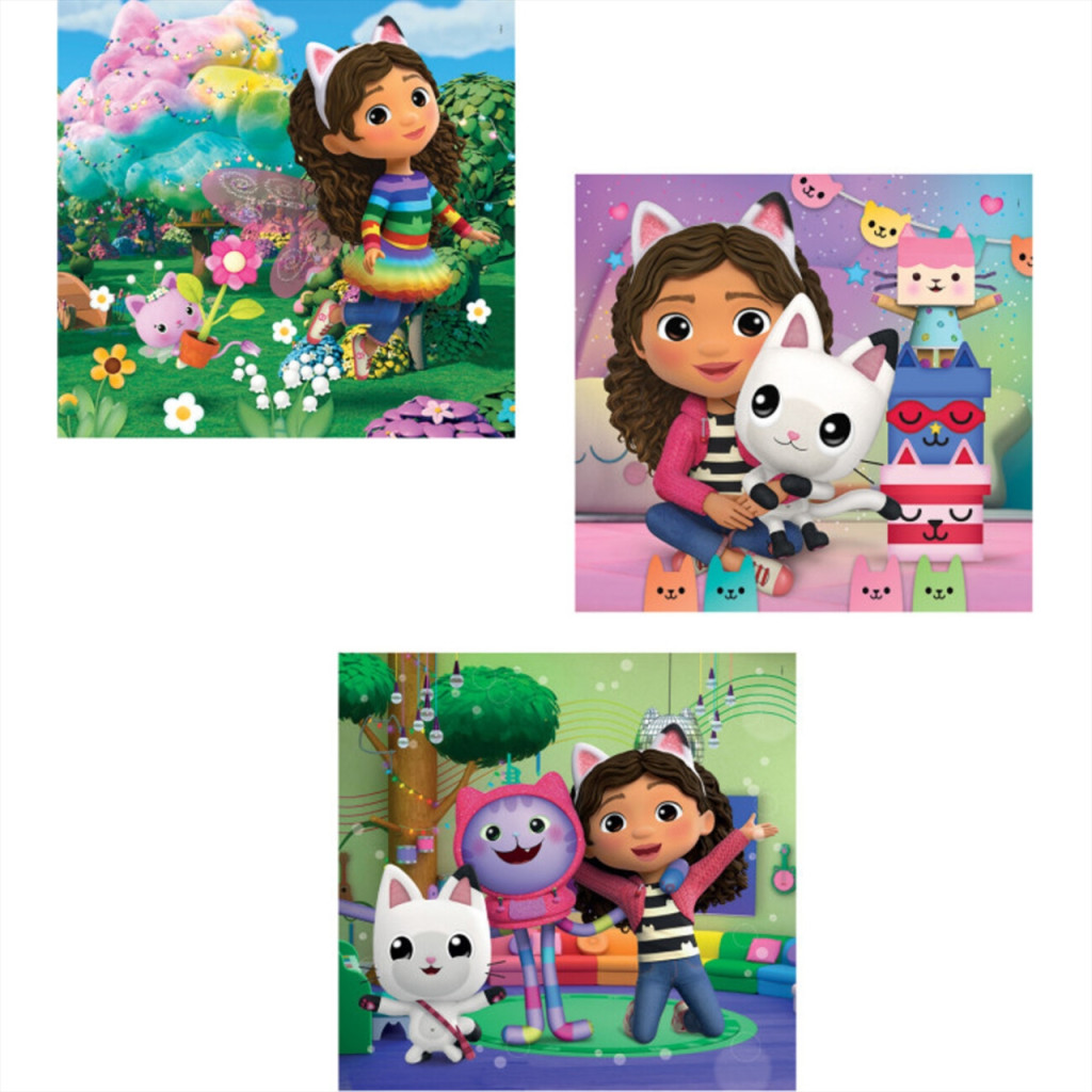 Gabi babaháza jeleneteket ábrázoló puzzle szett. A csomagban 3 db 48 darabos kirakó található.