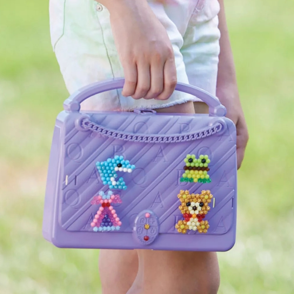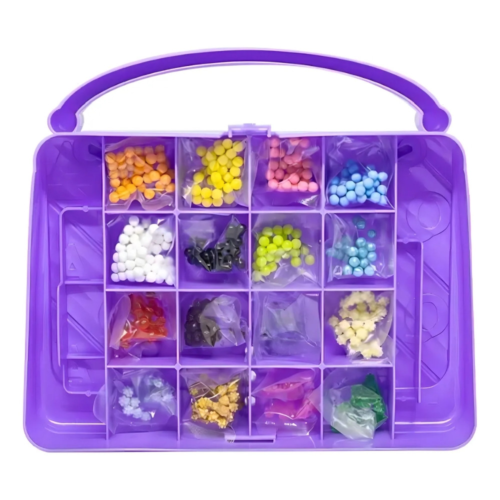 Az Aquabeads Hordozható dekorációs táska szett tökéletes választás minden kis alkotónak, aki szereti a színes gyöngyöket és a saját készítésű dekorációkat. A praktikus, könnyen hordozható táskában 500 gyöngy kapott helyet 16 különböző színben, köztük csillogó darabok is, amelyek még különlegesebbé teszik az elkészült figurákat.