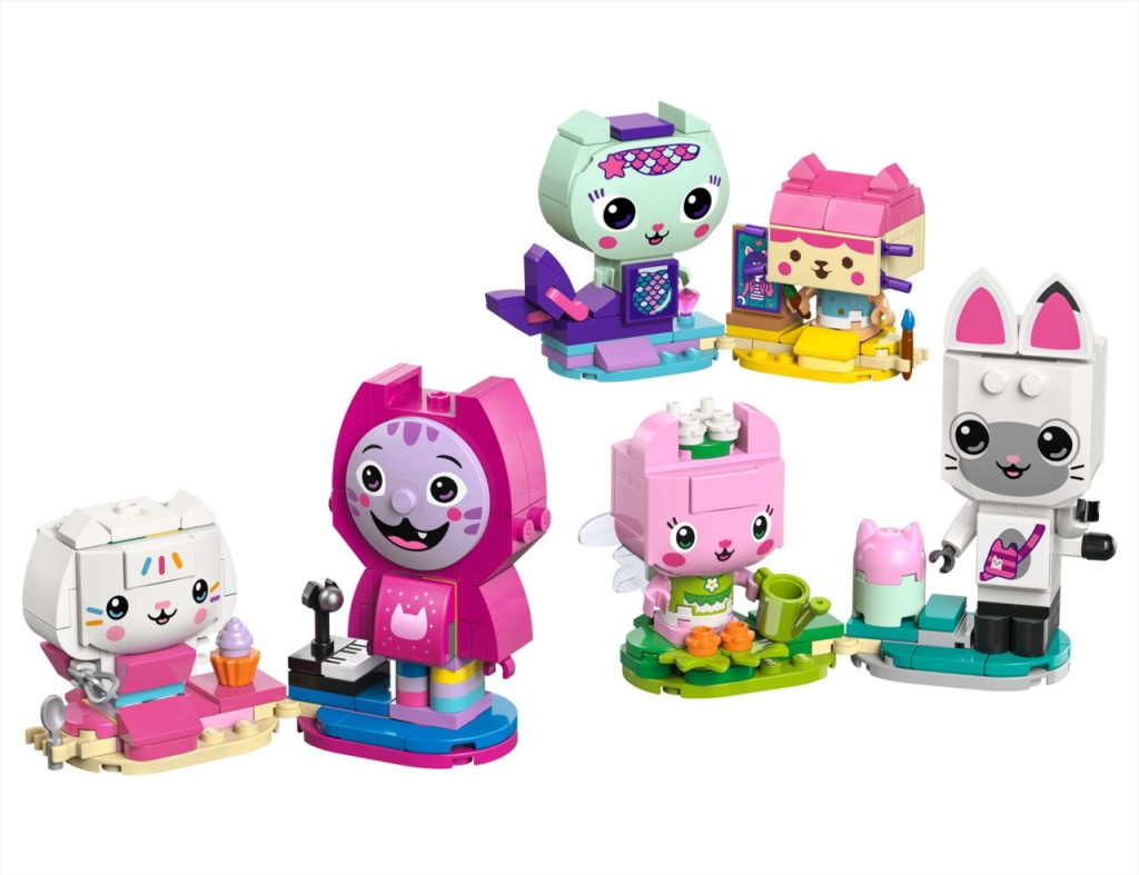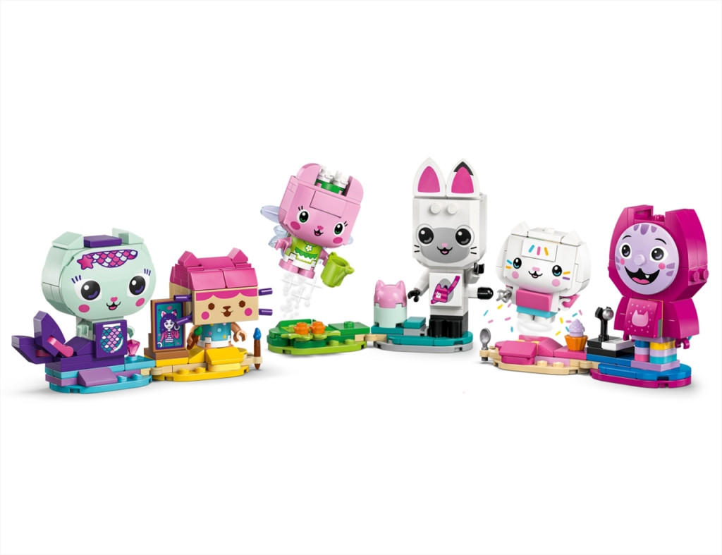 Ugorj be Gabi babaházába, és építsd meg kedvenc barátaidat! Szirénkének gyémántja van, Pici Doboznak egy Gabiról készült festménye, Cicatündérnek öntözőkannája, Pandi Pajtinak babaháza, Cakey-nek tortája, Daniel James „DJ” Cicafának pedig zongorája. Építsd fel a szórakozást – egyszerre elég egy macskabarát!