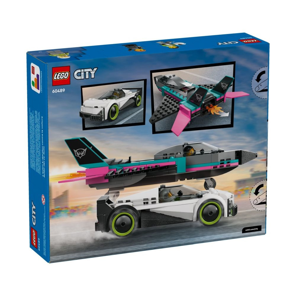 Ez a LEGO® City Határtalanul kihívás végső leszámolása! Ugorj be a karcsú szuperautó pilótafülkéjébe, vagy szállj fel az ívelt szárnyú sugárhajtású repülőgéppel! Végezz elképesztő közúti versenymanővereket, és kapcsold be a gép utánégetőit, hogy fokozd a versenyt! Ki nyer – az út vagy az ég? Készülj fel a nagy sebességű kalandokra LEGO Cityben!