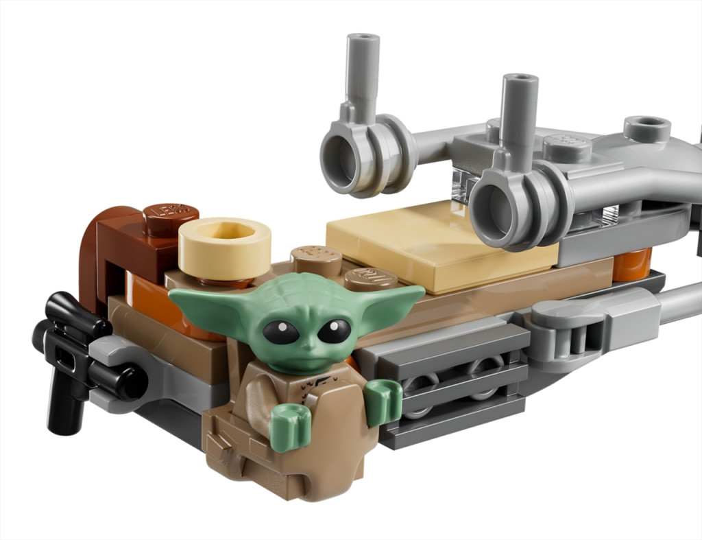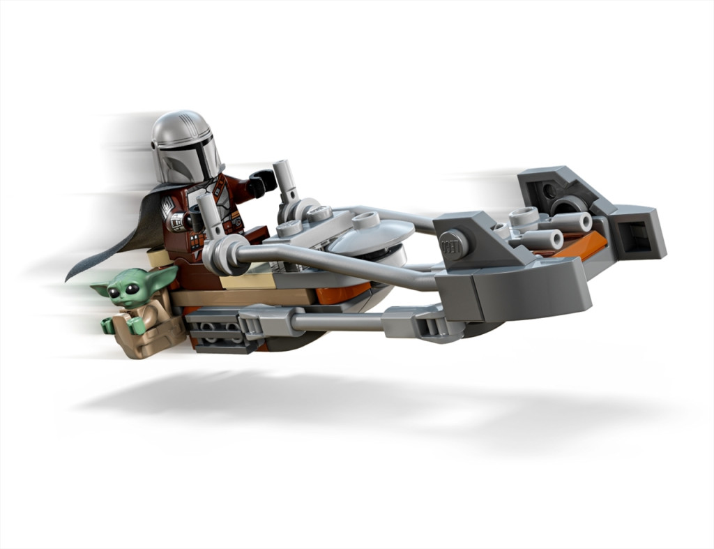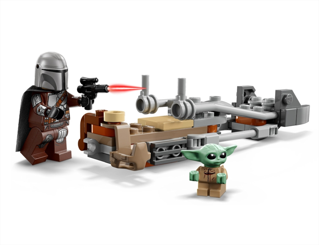 Csatlakozz a Mandalórihoz és Groguhoz, és élj át izgalmas kalandokat a Tatooine bolygón! Rögzítsd a Mandalóri sugárvető puskáját speeder bike-ja hátuljára. Segíts Grogunak beülni a fantasztikus jármű oldalán lévő táskába! Ülj be a Mandalórival a volán mögé, és száguldj át a sivatagi bolygón!
