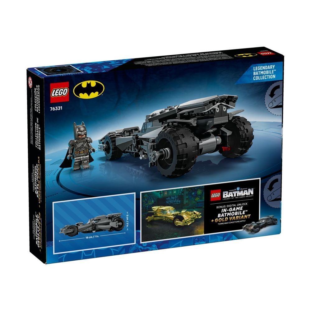 Méretek: A 220 elemből álló LEGO® DC Batman Batman Superman ellen: Batmobile készlet 5 cm magas, 18 cm hosszú és 10 cm széles