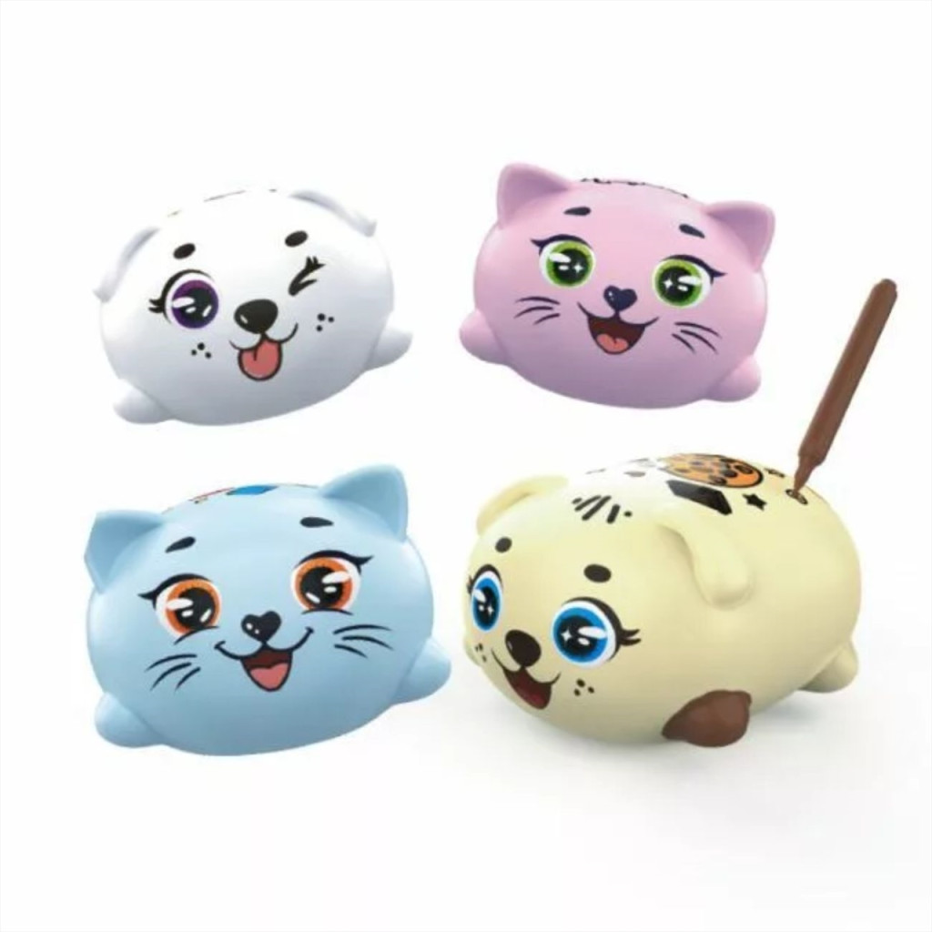 Ezek a puha, illatos és ellenállhatatlanul aranyos figurák (cica vagy kutya változatban) nem egyszerű játékok, hanem igazi kreatív vásznak. A mályvacukor-puha állatkák különleges, lemosható felülete végtelen alkotási lehetőséget biztosít.