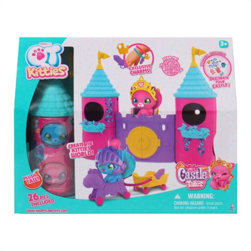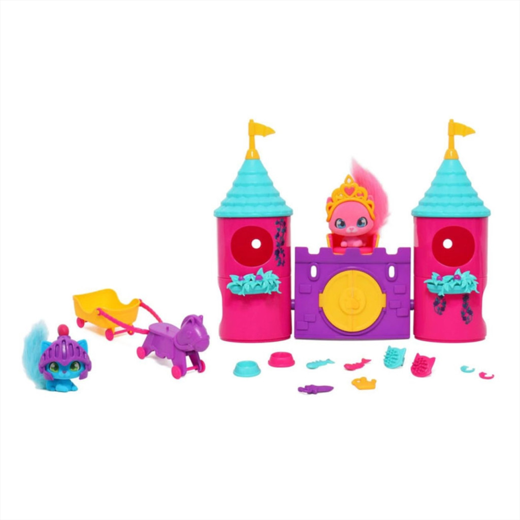 A színes elemekből egy gyönyörű kastély építhető két toronnyal, díszes kapukkal és királyi trónnal. A készletben több cica figura is helyet kapott – köztük egy különleges, exkluzív darab –, így a hercegnő és a lovag cicák már készen állnak a kalandokra.