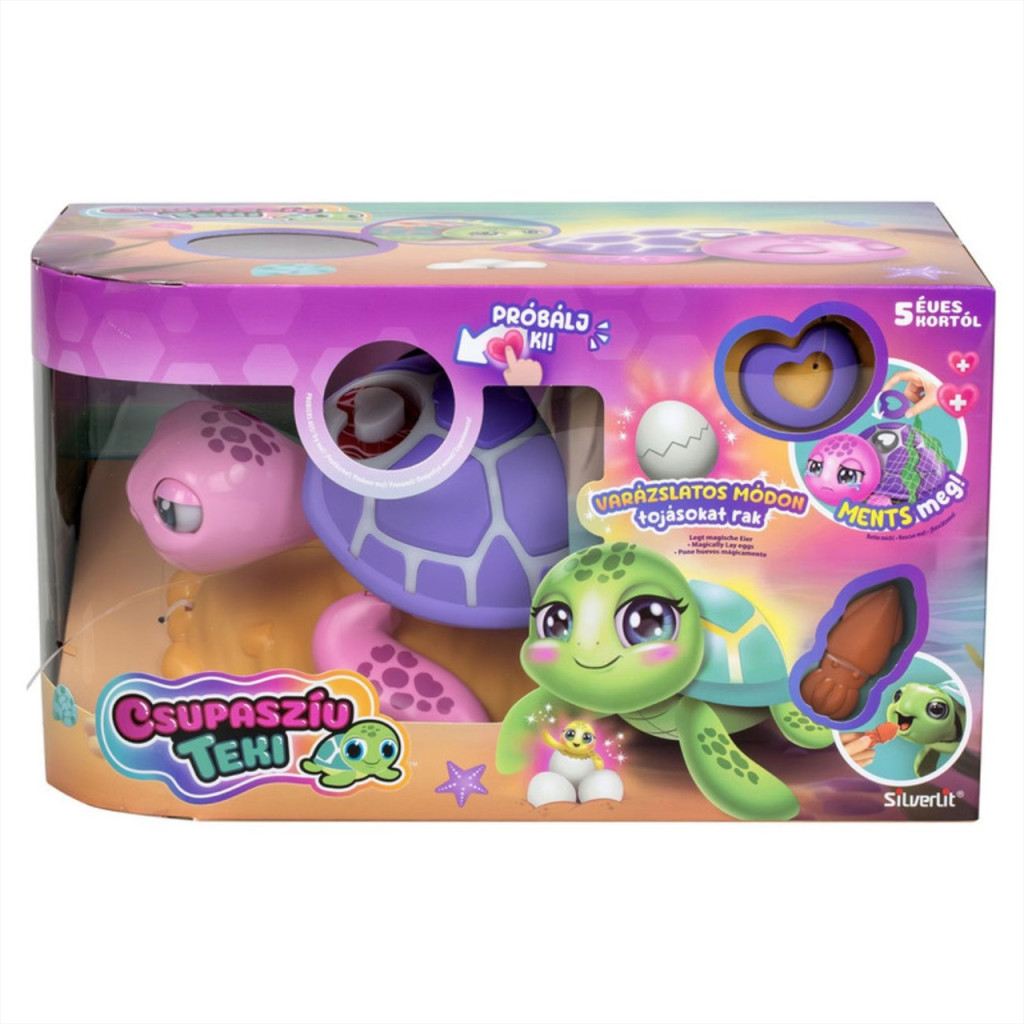 A Silverlit Csupaszív Teki egy bájos, interaktív kis teknős, aki csak arra vár, hogy valaki megmentse, gondoskodjon róla és szeretgesse. Hálából pedig tojásokat rak, amelyekben apró teknősök rejtőznek – a gyerekek így egy igazi életmentő és gondozó szerepébe bújhatnak.