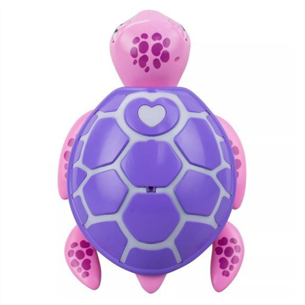 A pirosan villogó szív megnyomásával a teknős tojásokat rak, amelyekben mini teknősök bújnak meg. A teki etethető a csomagban található teknősétellel, és másképp reagál attól függően, hogy 1, 2 vagy 3 másodpercig kap enni.