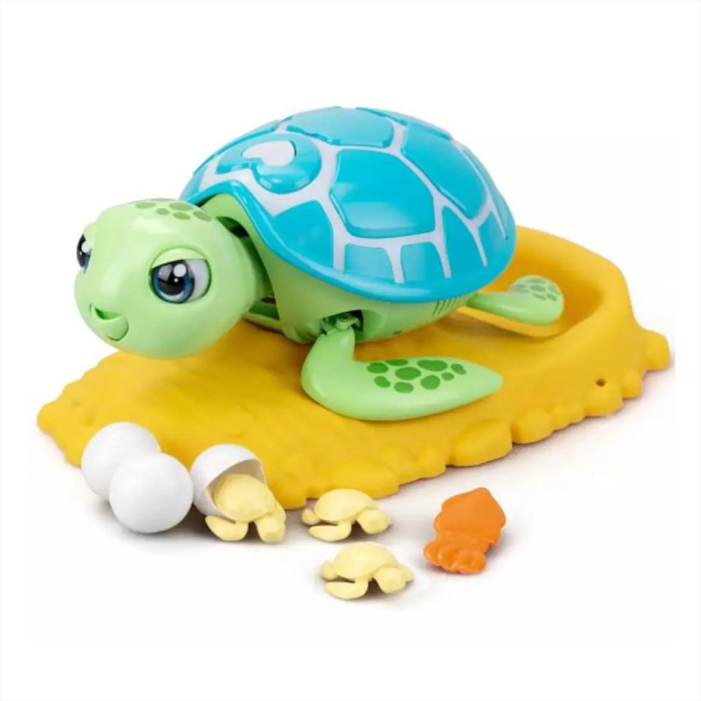 A pirosan villogó szív megnyomásával a teknős tojásokat rak, amelyekben mini teknősök bújnak meg. A teki etethető a csomagban található teknősétellel, és másképp reagál attól függően, hogy 1, 2 vagy 3 másodpercig kap enni.