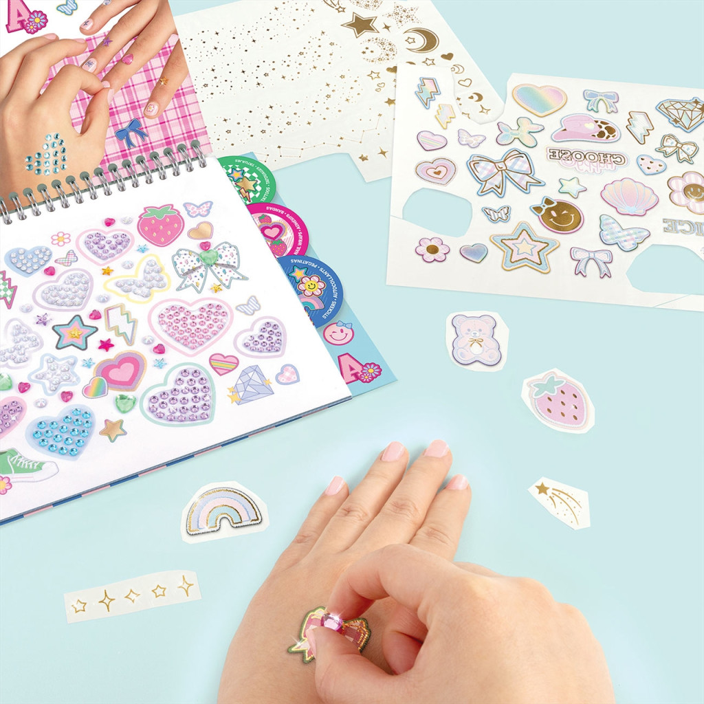 Te vagy a művész, te vagy az ihlet, te vagy a vászon! Lapozdvégig ezt klassz Make It Real kozmetikai könyvet, és fedezd fel a lenyűgözőválogatást az ideiglenes tetoválásokból, körömdíszekből és testékszerekből,amelyek bármelyik napon feldobják a megjelenésedet! Vigyél egy kis csillogást amindennapokba, és váltogasd a stílusodat kedved szerint! Ez a szett segít azönkifejezésben a feltörekvő divatrajongók számára. Engedd szabadjára akreativitásodat: helyezd el a köveket vidám mintákban, díszítsd velük asminket, vagy dobd fel a megjelenésed bájos, csillogó szeplő-tetoválásokkal.Szuper ajándék bármilyen alkalomra – legyen szó születésnapról, ünnepről vagycsak úgy! Csajos partikon együtt is kiváló szórakozást nyújt ez az aktivitásfüzet!Ezt a különleges kozmetikai szettet 8 éves kortól ajánljuk.