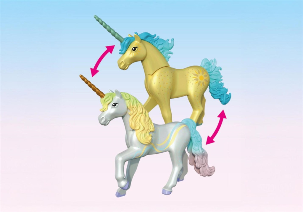 Fedezd fel a szivárvány színeiben ragyogó tündérvilágot a PLAYMOBIL® Szivárványvirág unikornis játékszettel! Ez a különleges, gyűjthető kiadás egy káprázatos egyszarvút és egy stílusosan öltözött tündért tartalmaz, akik együtt őrzik a természet varázsát egy csodálatos virágos réten.