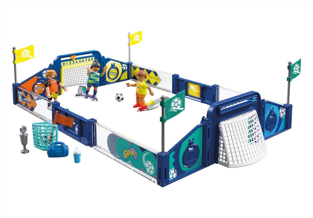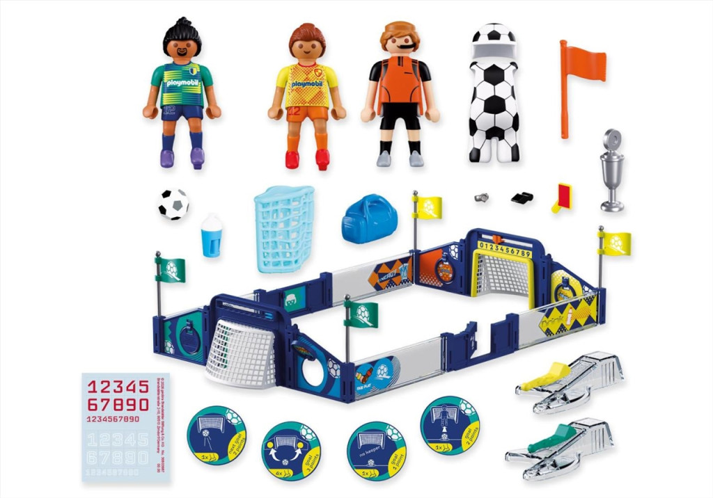 A PLAYMOBIL® 72056 Fociaréna egy kompakt, mégis pörgős focis játékszett, ahol két játékos csaphat össze.