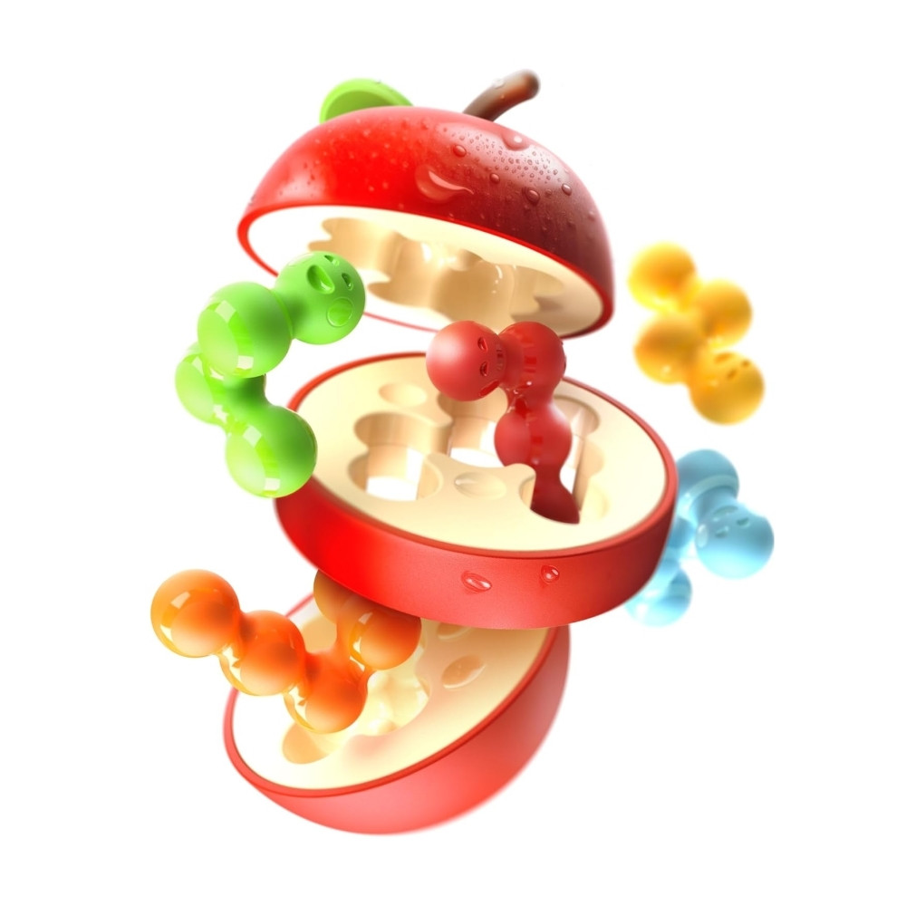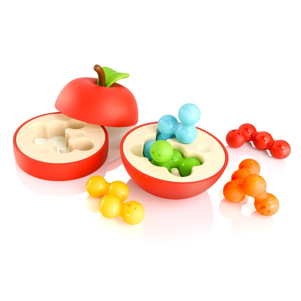 Helyezd el az összes kukacot az almában úgy, hogy közben egymásra helyezed az almaszeleteket is. Keresd meg a kukacok megfelelő elyét, és rendezd el a három szeletet úgy, hogy be tudd zárni az almát. Teljesítsd mind a 80 feladványt!