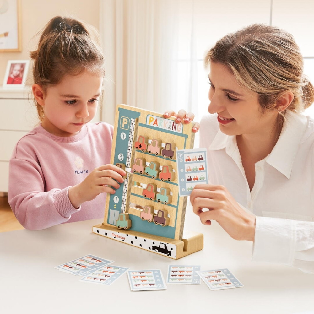 A Topbright parkolási feladványok fa logikai játékát úgy tervezték, hogy az autó színéhez illő innovatív kirakós játékkal szórakozást és tanulást hozzon a gyermek mindennapjaiba. A játék 10 kétoldalas kártyát tartalmaz, amelyek 20 egyedi kombinációt kínálnak különböző kihívásokhoz.