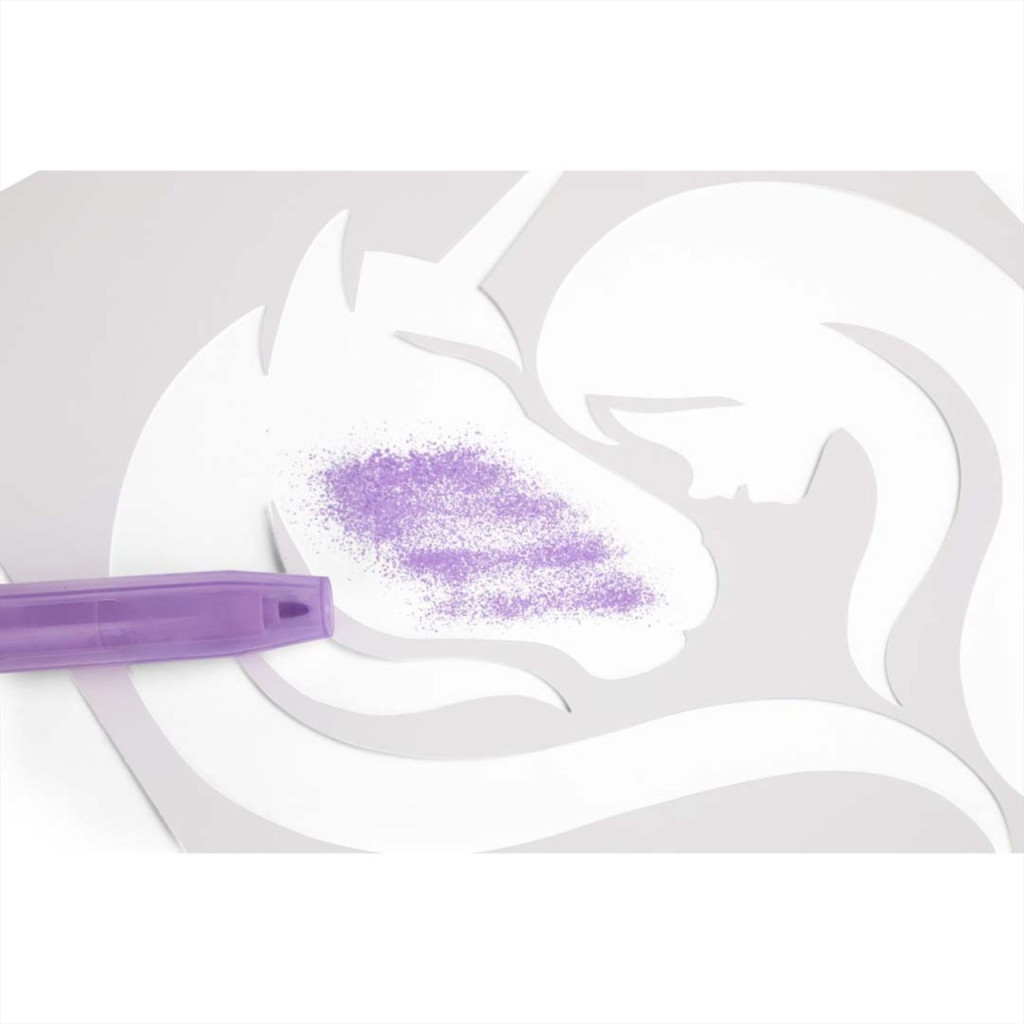 A játék során a gyerekek egyszerűen kiválasztják kedvenc színüket a hét élénk árnyalat közül, majd belefújnak a filcekbe, így finom festékpermet kerül a papírra. A mellékelt sablonok segítségével könnyedén életre kelnek az unikornisok és mesebeli jelenetek, miközben a különböző színek egymásra rétegezésével új, izgalmas árnyalatok születnek. Minden alkotás egyedi lesz, tele varázslattal és kreativitással.