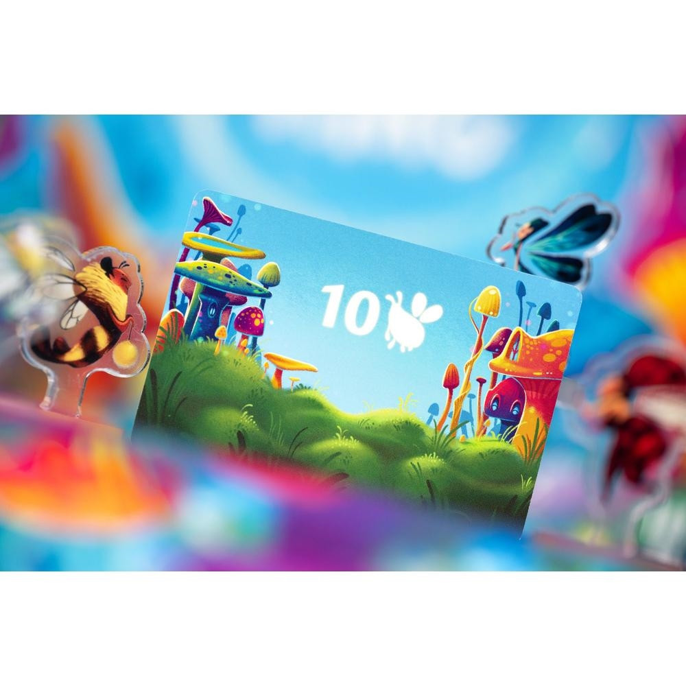 Holdfény járja be a tisztást. A Tündértánc bájos és könnyed családi kártyajáték. A játékosok gombatornyokat növesztenek, hogy körbe repkedve minél több manát gyűjthessenek. Az erdő mélyén a tündérek virágról virágra szállva virágport… Ja, nem, azok a méhek. A tündérek gombáról gombára szállnak, és manát gyűjtenek. Mindeközben vidáman gyarapítják, növesztgetik színpompás gombafalujukat, abban a reményben, hogy általa egyre több és több manát tudjanak gyűjteni.