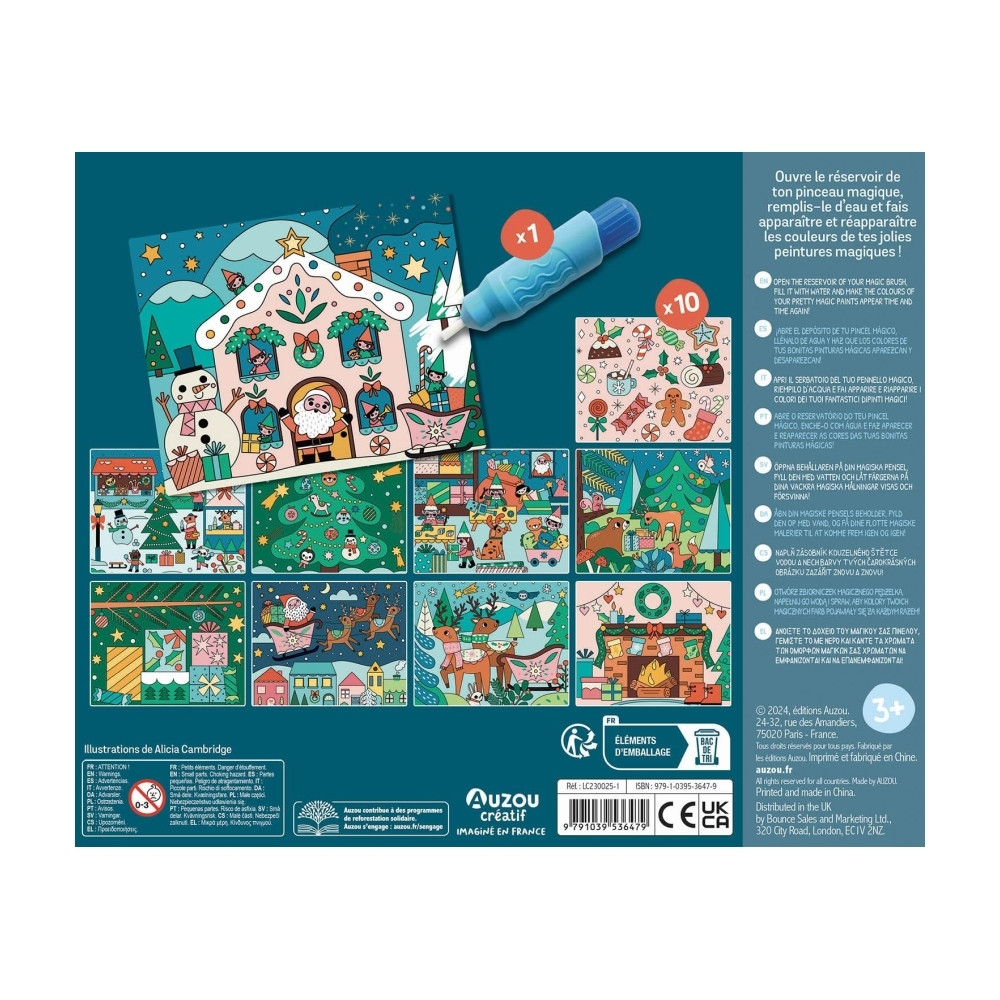 A készletben egy vízzel festő ecset és 10 db kép található karácsony témakörben.