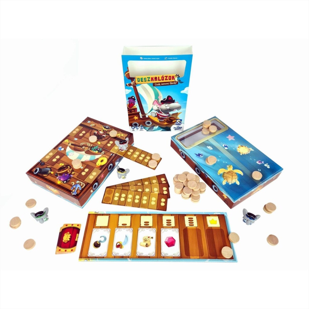 A Deszkalózok – Csak semmi fánik! kedves kockázatvállalós társasjáték gyerekeknek (is). A játékosok kincskártyákat húznak – amíg csak mernek! Ha nem túl mohók, ládákat pakolhatnak ellenfeleik (mágneses) pallóira, hátha vízbe pottyannak!