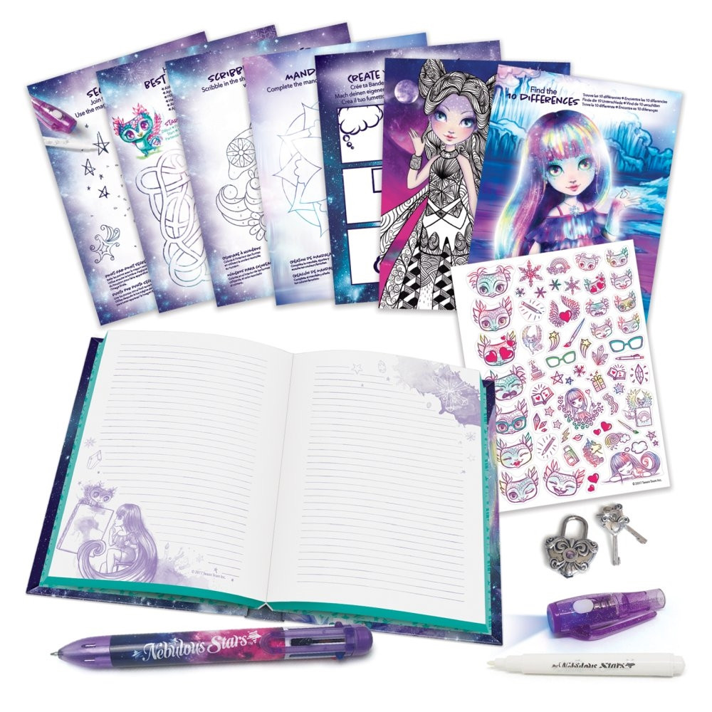 Tartalma: 6 db színes golyóstoll, mágikus toll világító kupakkal, 44 oldal különböző okkal, 150 vonalas oldal, matricák, használati utasítás.