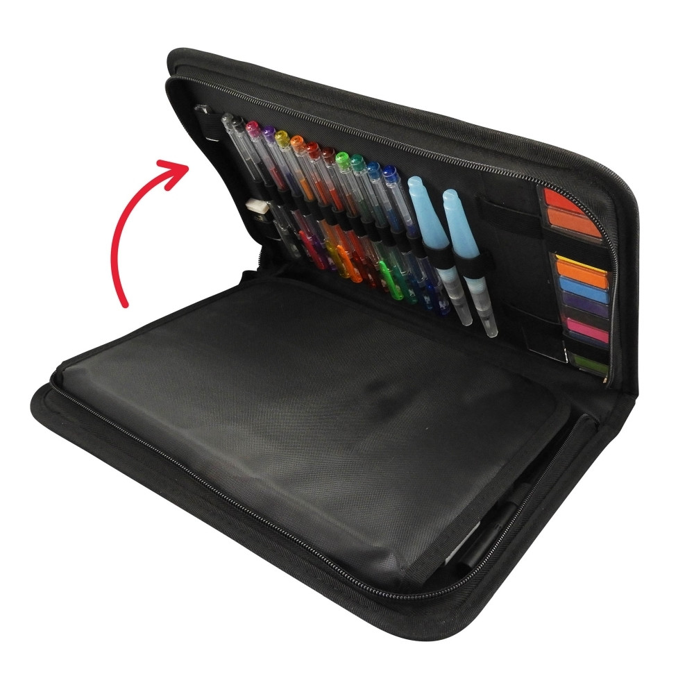 Egy fantasztikus készlet, a rajzoláshoz szükséges minden eszközzel megtöltve! Praktikus, mivel a rajzfüzet a tolltartóhoz rögzíthető, így megfelelő alátétként is szolgál a rajzoláshoz.