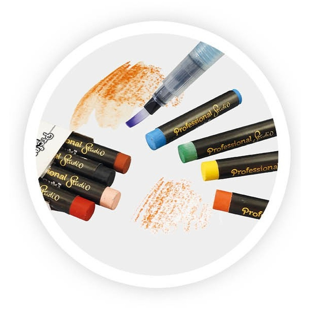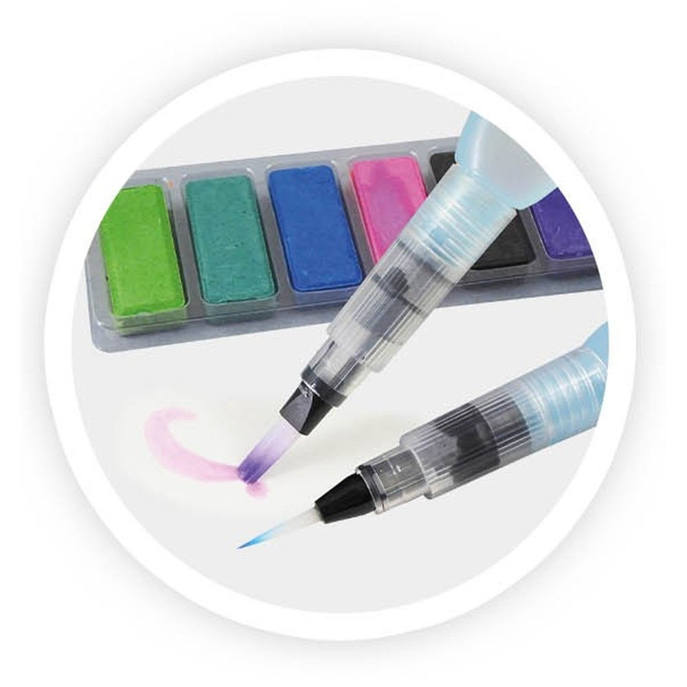 Tartalma: A4-es rajzfüzet 35 vastag lappal (160mg), 12 db zselés toll, 24 db kétvégű filctoll, 8 db aquarell ceruza, pasztellkréták, 2 vízfestő toll, 12 db-os vízfesték, 2 grafitceruza (HB és 2B), radír, vonalzó, ceruzahegyező, stb.