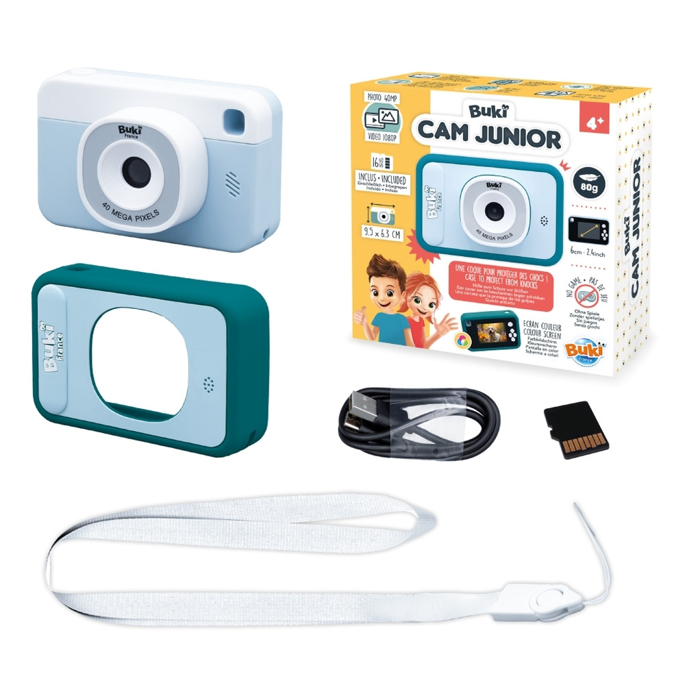 Egy nagyon könnyen használható kamera, amelyet kifejezetten kisgyerekek számára terveztek, hogy minőségi fotókat és videókat készíthessenek vele. Nincsenek rajta játékok, így a gyerekek a fotózás művészetének felfedezésére koncentrálhatnak. Súlya mindössze 80 g, így a gyerekek könnyen hordozhatják. A fényképezőgép szilikon tokban van, amely megvédi, ha leejtik. 16 GB-os Micro SD kártya tartozik hozzá a fotók és videók mentéséhez.