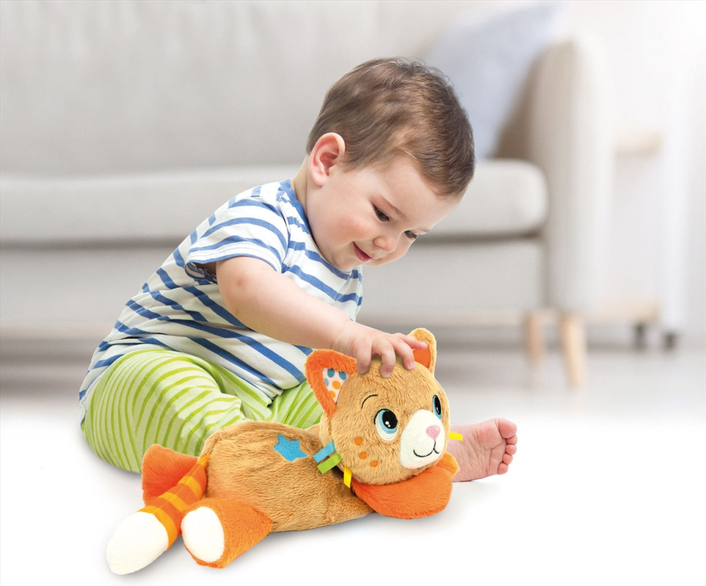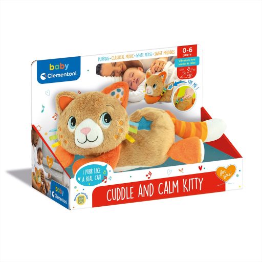A Clementoni Ron Ron nyugtató plüss cica a legédesebb alvótárs. Ez a puha, kedves plüssfigura különleges rezgésekkel és megnyugtató dallamokkal segíti a kicsiket az ellazulásban és az elalvásban. A rezgés a valódi macska dorombolását utánozza, amely bizonyítottan nyugtató hatással van – nemcsak a gyerekekre, hanem a felnőttekre is.