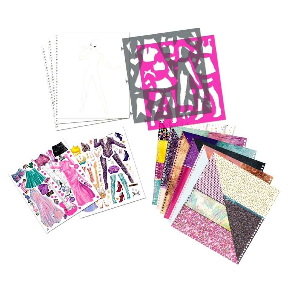 Válj világhírű tervezővé ezzel a nagyszerű TOPModel Popstar divattervező füzettel! Öltöztesd fel a popsztárokat a legmenőbb fellépő ruhákba. Mindent megtalálsz a készletben, amire szükséged lehet az igazán trendi és egyedi stílusok életre keltéséhez. Engedd szabadjára kreativitásod, és irányítsd Te a sztárok divatját!