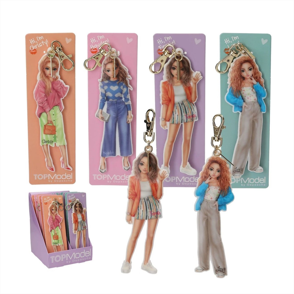 TOPModel kulcstartók mindkét oldalán látni a modelleket, aranyszínű karabinerrel rendelkezik. 4 különböző modell elérhető: Christy, Hayden, Fergie és Lexy. Anyaga: 100% PVC