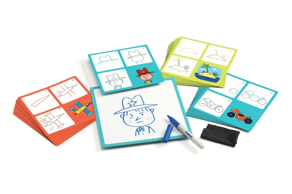 A „Rajzolni tanulok lépésről lépésre” készlet segítségével a gyerekek kedvenc fiús dolgainak lerajzolása könnyedén megtanulható úgy, mint motor, seriff, robot, markoló vagy éppen egy tűzoltóautó. Csak a kártyákon található egyszerű formákból összeállított utasítást kell követni. A kreatív készlethez tartozó, letörölhető tábláról az apró hibák egy mozdulattal eltávolíthatók, ezzel biztosítva, hogy a gyermekek sikerélménnyel zárják a foglalkozást. A rajztáblához táblaíró filc használható. A játék tartalma: 24 db „lépésről-lépésre” rajzkártya, 1 db rajztábla, 1 db letörölhető filc.