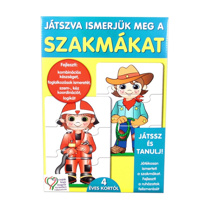 A Játszva ismerjük meg a szakmákat fejlesztő játék segítségével szórakozva ismerhetik meg a gyerekek a szakmákat. Különböző feladatok során, a szakmákhoz tartozó figurákat kell felismerniük és összepárosítaniuk. Ezzel az oktató játékkal a gyerekek szórakozva bővíthetik képességeiket!
