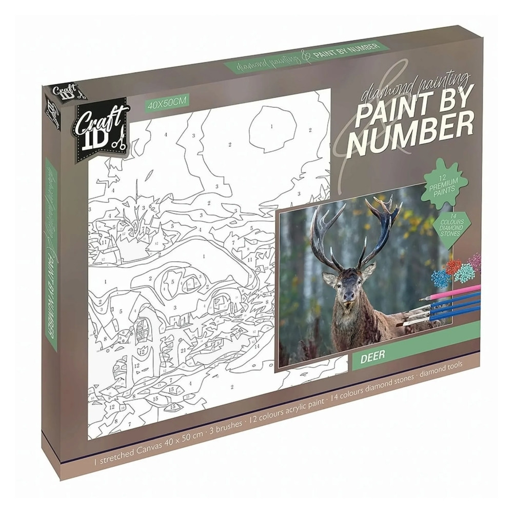 A Gyémántszemes kirakó és festés szám szerint  2az1-ben készlet mindent tartalmaz, amire az elkészítéshez szükséged lesz. Prémium minőségű előre nyomtatott vászon, melyen a kifestésre váró részek számokkal vannak jelölve.