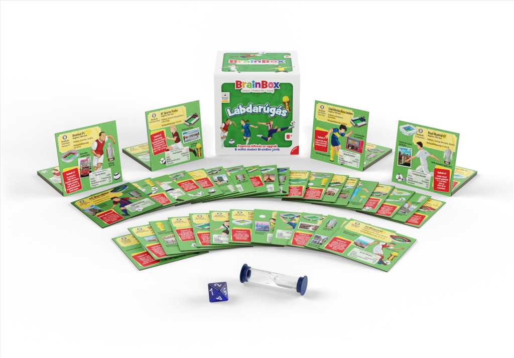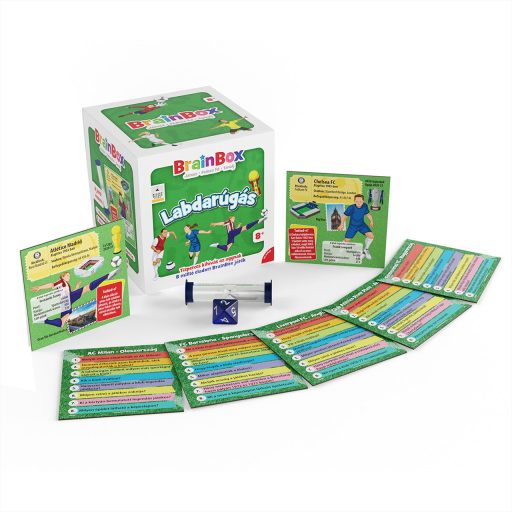 A BrainBox Labdarúgás (Foci) nem a lábmozgásodat, de a memóriádat edzi. Gyorsan tanulsz? Lássuk, hogyan dekázol a focis tudással. A Brainbox Foci remek agytorna és szórakozás, egy vagy akár több játékos részére! Húzz egy kártyát, tanulmányozd, és jegyezz meg minél több információt 10 másodperc alatt. Ezután fordítsd le a kártyát, dobj a kockával, és válaszolj helyesen a kidobott számmal jelölt kérdésre. Ne húzd ám az időt, hiszen a homokórán gyorsan leperegnek a szemek! A válaszokat a kártyán ellenőrizheted. Ha jó megfigyelő vagy, és ismered a a legikonikusabb focicsapatokat és játékosokat, akkor a legtöbb kártya nálad landol! A BrainBox a gyors megfigyelések és a vizuálismemória-kérdések családi játéka.