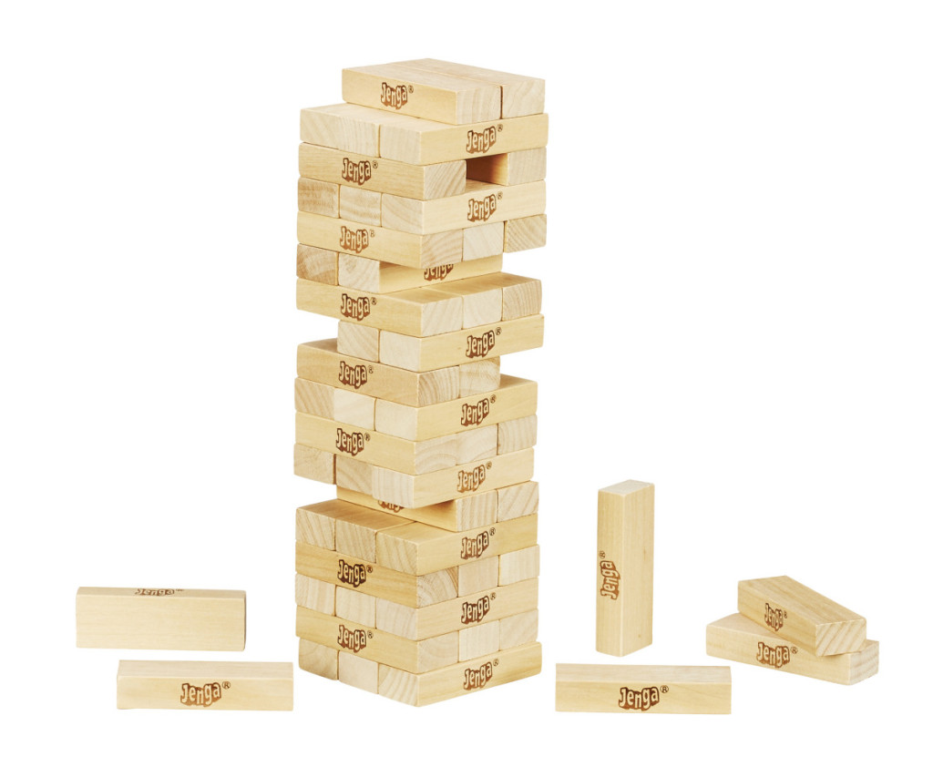 Jenga Classic. A klasszikus építkező, ügyességi társasjáték lényege, hogy a játékosok egymás ellen játszva minél magasabb tornyot építsenek az alapépítményből kihúzott fahasábokból. A játék során a koncentráció, a kézügyesség és a nyugalom egyaránt növeli a nyerési esélyeket. A fordulót az a játékos nyeri, aki a legutolsó hasábot anélkül tudja a torony tetejére helyezni, hogy az eldőlne.