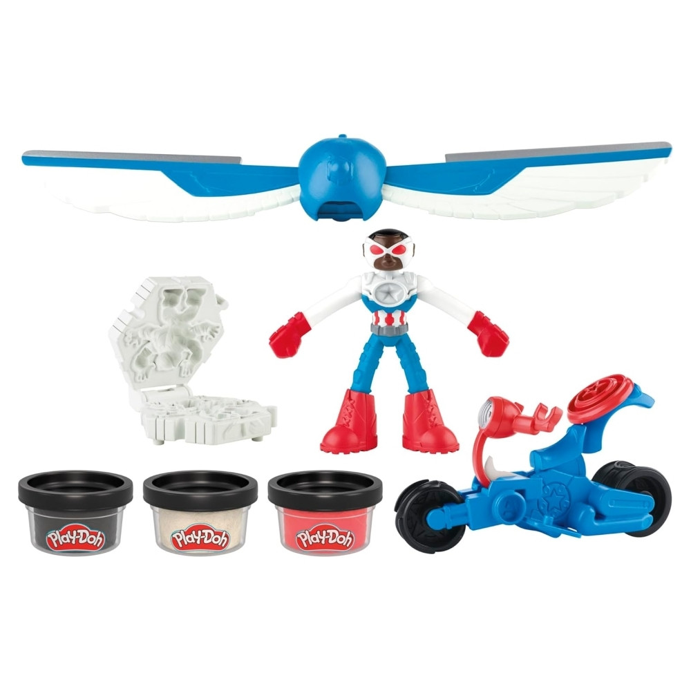 A képzelet képes megmenteni a világot a Play-Doh Amerika Kapitány moto-szeletelő játékkészlettel! A gyerekek könnyen és mókásan alakíthatják ki saját kalandjaikat kedvenc karaktereikkel, például Amerika Kapitánnyal. A Play-Doh Marvel-figura hajlítható, rugalmas karokkal és lábakkal rendelkezik, amelyeket a gyerekek különböző Play-Doh kiegészítőkkel testre szabhatnak. A 2 az 1-ben szárnyak mind a figurához, mind a járműhöz rögzíthetők a hasító akcióhoz. Alkoss rosszfiúkat a könyv alakú présformával, amelynek a tetején lábakat is találsz a figura kiállításához. A 3 nyúlós, színes gyurmát tartalmazó Play-Doh tégely remekül használható, ha a fiúk és a lányok kézműves alkotásairól van szó. Turbózd fel a kreativitásukat ezzel a motoros játékkal!